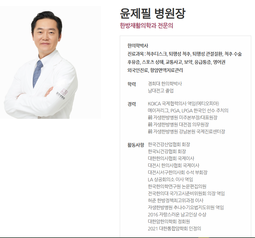 윤제필 전문의는 대전 필한방병원 한방재활의학과 병원장 이십니다.