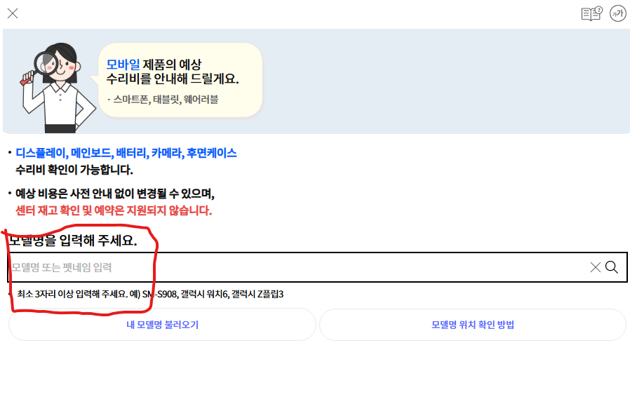 삼성전자서비스 챗봇 서비스로 배터리 가격 직접알아보기