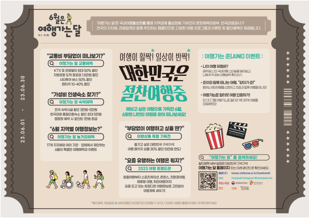 다양한 여행 프로그램과 이벤트 및 할인혜택이 제공된다고 합니다.‘6월 여행가는 달’ 기차상품은 K-컬쳐, 스포츠케이션, 취미여행, 미식여행 등 4가지 테마를 중심으로 다채로운 이색체험과 유명 관광지가 포함하였습니다.